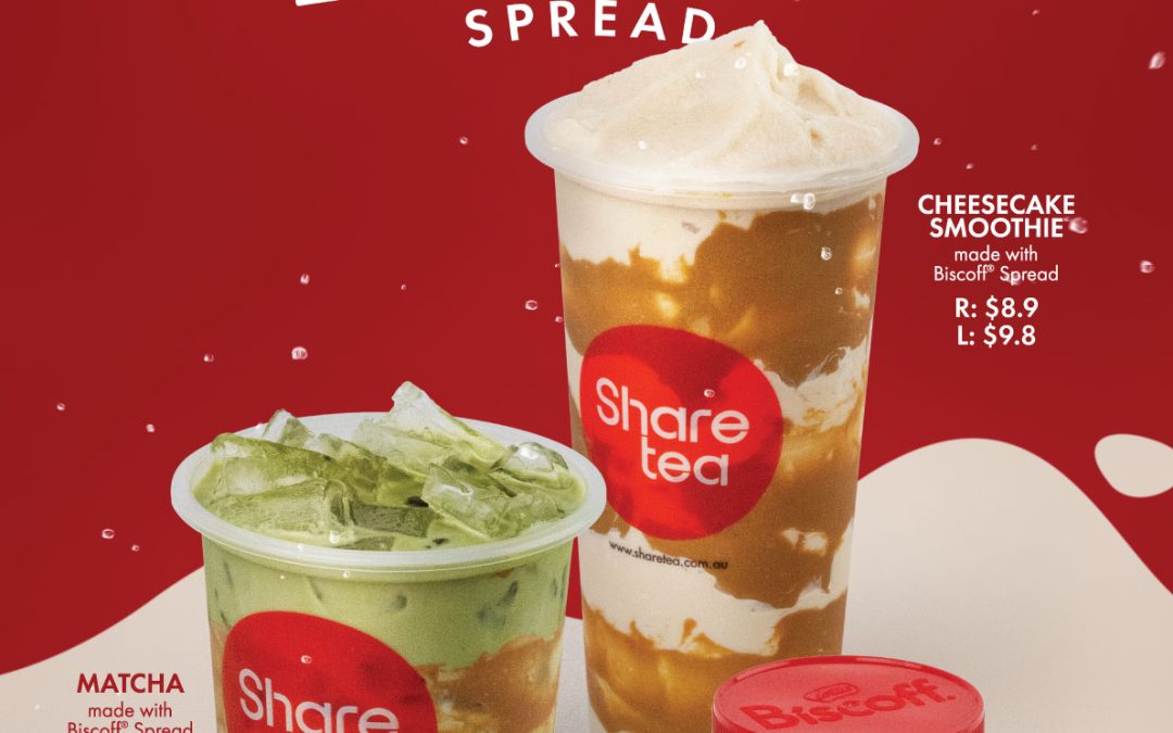 Discover Sharetea’s latest Biscoff creations — Matcha and Cheesecake Smoothies infused with caramel biscuit goodness.